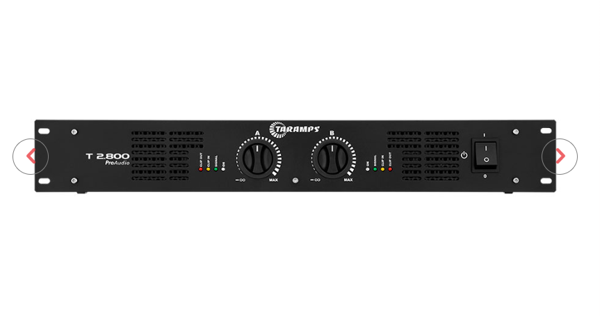 O modelo T-2800 será responsável pela amplificação das caixas acústicas e do subwoofer. Com 2 canais de 400W RMS a 4 ohms, oferece potência adequada e conexões robustas, incluindo Speakon, garantindo maior segurança, durabilidade e facilidade na instalação.